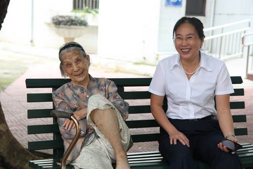 湘桂集團(tuán)總裁助理黃春梅與福利院老人愉快地交談。