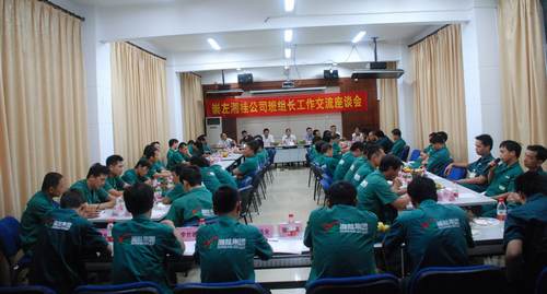 崇左湘桂公司副總經(jīng)理郭光海、蒙昌寬,總經(jīng)理助理李軍等公司領(lǐng)導(dǎo)及各車間班組長約60人參加座談。